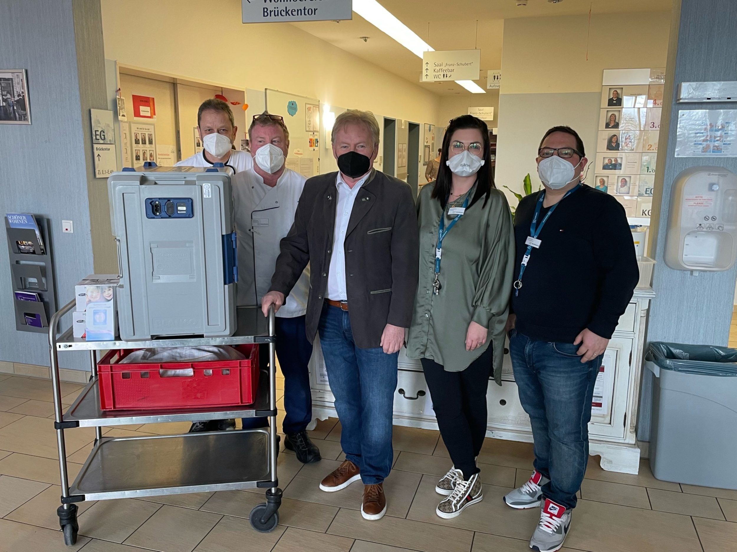 Bild von links Peter Lorenz (stellv .Küchenleiter) , Rainer Otto (Küchenleiter ) , Stefan Labus (Kindertafel), Jasmin Braun ( Leitung sozialer Dienst ) und Dominik Küfner (Einrichtungsleitung )